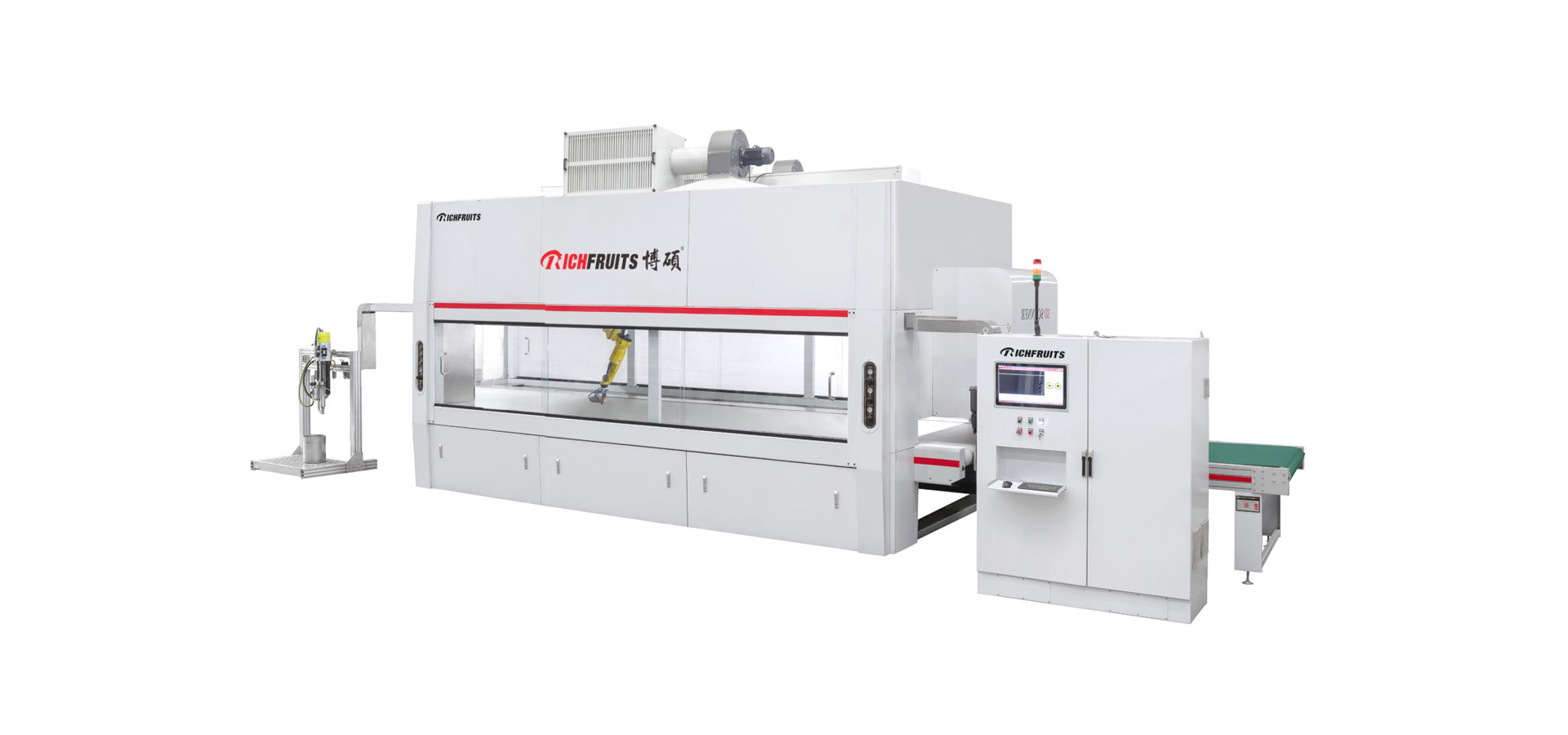 適合厚度在300mm以內的任意工件。針對辦公臺面、辦公臺側板、套房家具床頭架、弧形柜板、展示柜臺面等較為復雜的工件。無需人工干預,智能驅動機器人噴漆的邏輯和噴涂的模式。面漆、修色兼容;精確的油漆扇幅,霧化,流量。
