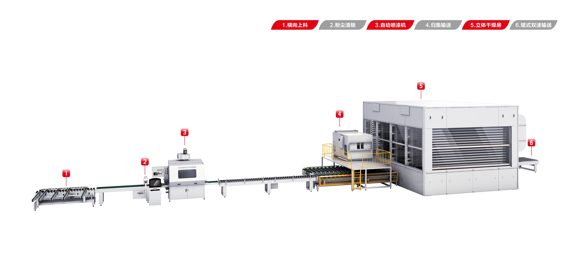 適用于板式家具、實(shí)木門(mén)、櫥柜門(mén)、工藝品、裝飾板、硅酸鈣板、玻鎂板、水泥纖維板的板式加工件的平面和四個(gè)側(cè)邊進(jìn)行高質(zhì)量、大批量連續(xù)噴漆。