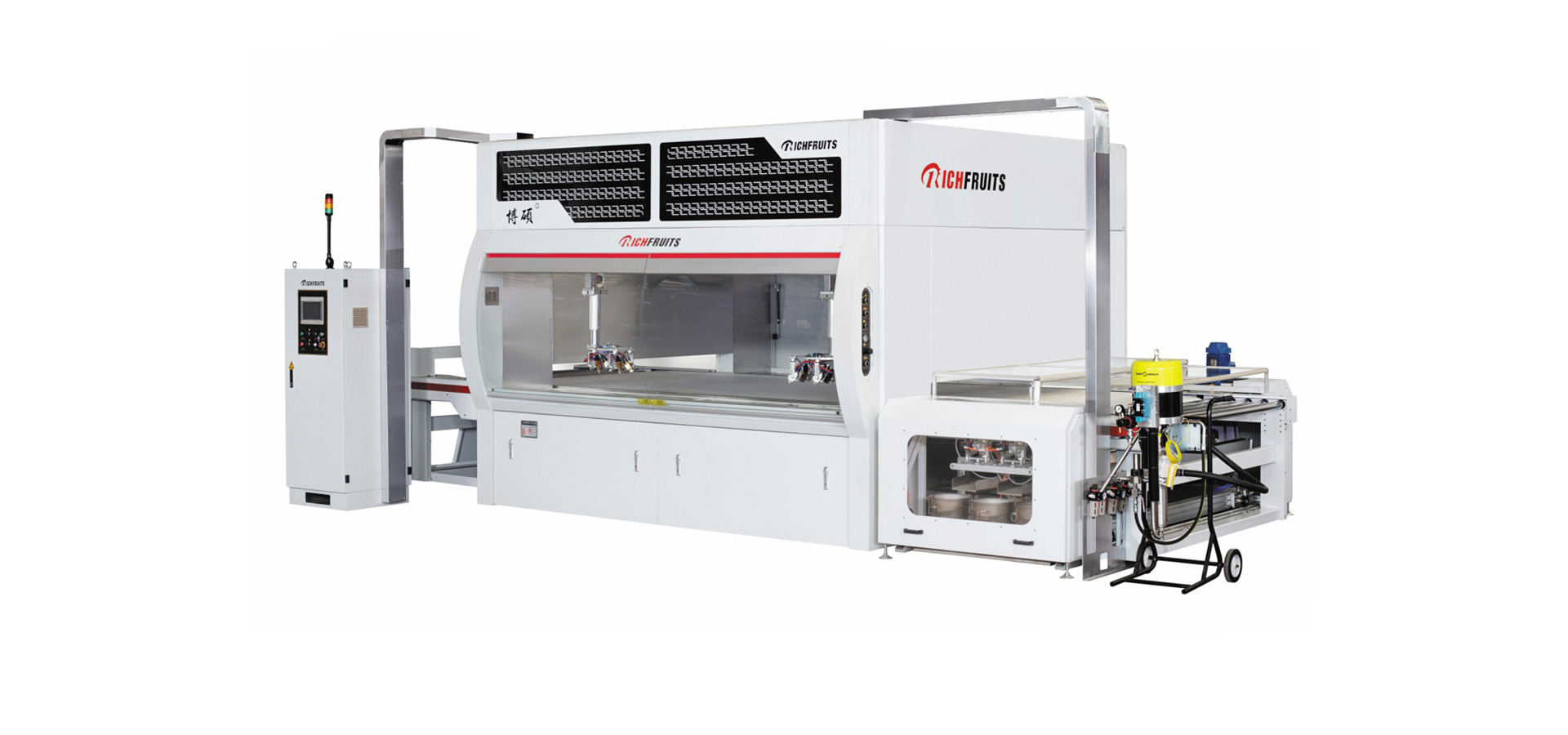 適用于實木家具、實木復合門、美式櫥柜、套房家具、衛(wèi)浴柜、展示柜、工藝品等板式工件的平面和四個側邊,針對UV、PU、AC、NC和水性漆等,進行高質(zhì)量效果連續(xù)自動噴漆,實現(xiàn)節(jié)能、環(huán)保和減少人工,提高產(chǎn)品質(zhì)量和生產(chǎn)效率。