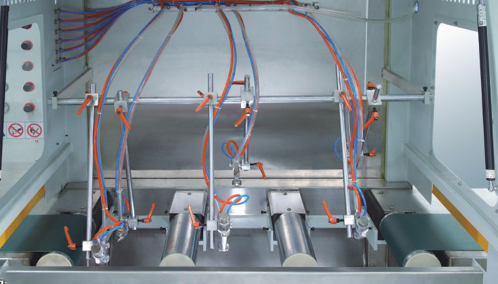 適用于門框線、畫框、舌槽企口板、門窗配件、家具配件、踢腳線、地板、塑鋼型材和木塑線條等條型工件的三個表面,針對PU、NC、PVC、UV和水性油漆等各種油漆進行連續(xù)自動噴漆。自動噴槍標準配置采用原裝進口日本巖田自動空氣噴槍,噴漆室輥輥涂采用單邊懸掛結構,配刮刀。