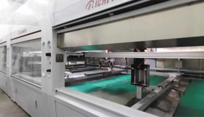 B21300MM 三工位木門噴漆機(jī)適用于木門雙面懸空噴漆,采用數(shù)控往覆噴漆模式,將整門噴漆的動(dòng)作拆解為三個(gè)噴漆工位:第一個(gè)工位噴木門的A面,第二個(gè)工位噴邊部和凹凸線以及自動(dòng)翻面,第三個(gè)工位噴B面;三工位同時(shí)工作,可以將木門控制在45秒之內(nèi)完成一扇門的噴漆。無托架懸空支撐結(jié)構(gòu),木門懸空長度自動(dòng)調(diào)節(jié),配光幕掃描系統(tǒng)掃描木門的尺寸和造型,數(shù)控往覆噴涂模式,可以進(jìn)行十字方式噴涂。