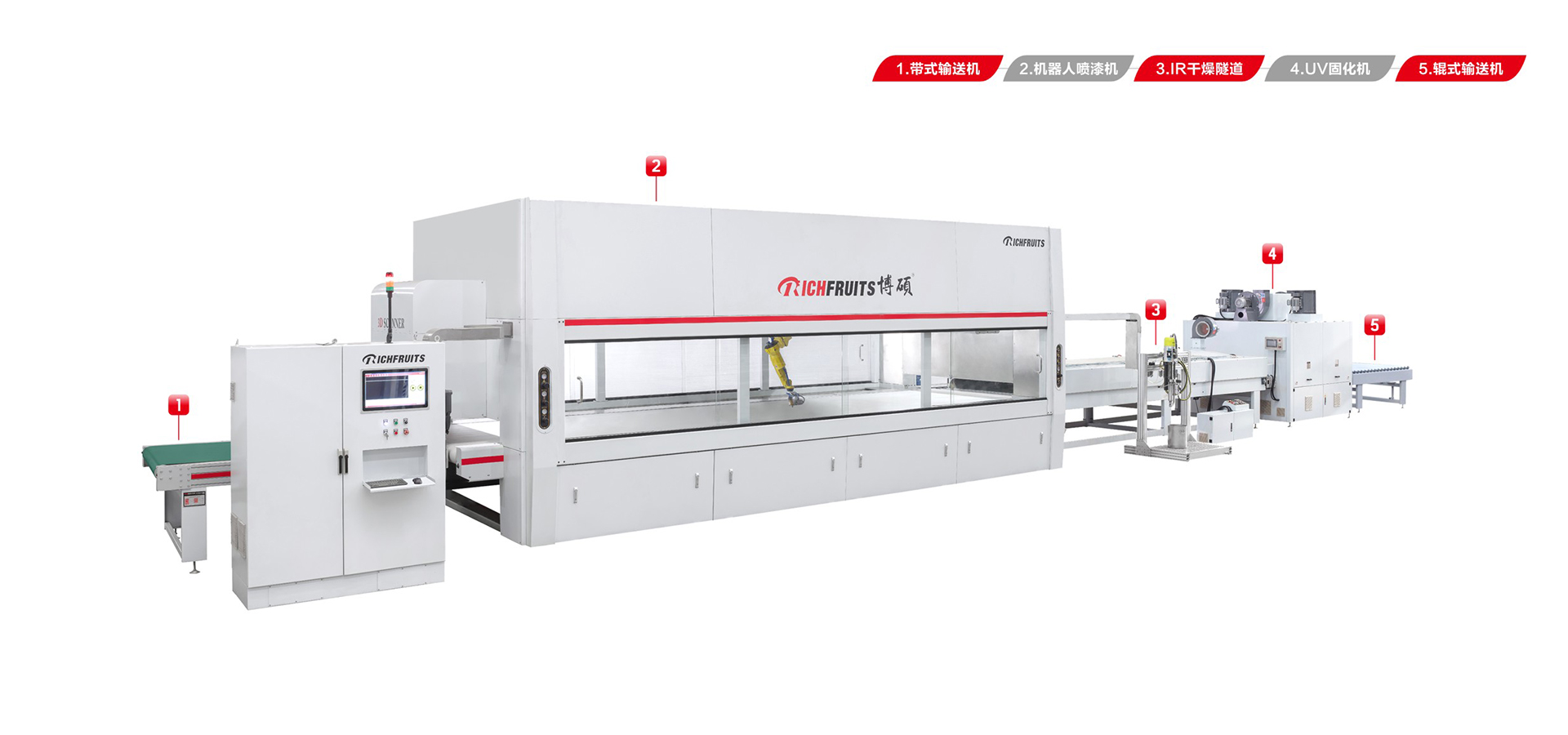 適用于板式家具、實木門、櫥柜門、工藝品、裝飾板、硅酸鈣板、玻鎂板、水泥纖維板的板式加工件的平面和四個側(cè)邊進行高質(zhì)量、大批量連續(xù)噴漆。