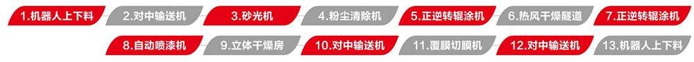 實色氟碳漆和銀粉氟碳漆的混合生產(chǎn)線,解決了既能生產(chǎn)實色氟碳漆又能生產(chǎn)金屬銀粉漆的一線兩用效果。輥噴結(jié)合的模式,不但節(jié)省油漆,提升產(chǎn)效,同時使銀粉顆粒豎起均勻排布,漆面效果優(yōu)于全輥涂的壓平效果,提升產(chǎn)品的質(zhì)量。