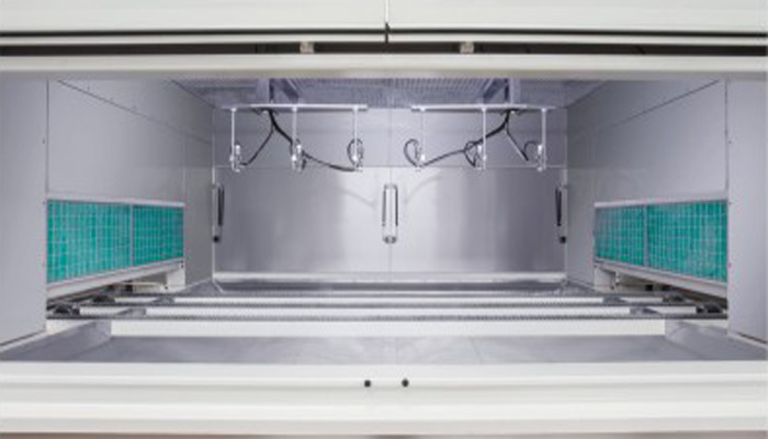寬體雙臂自動噴涂室:鏈條輸送方式,變頻調(diào)速;一字噴槍排布;配光電掃描,控制噴槍的啟停動作。平整垂直的噴涂室,貼防護(hù)膜更容易。