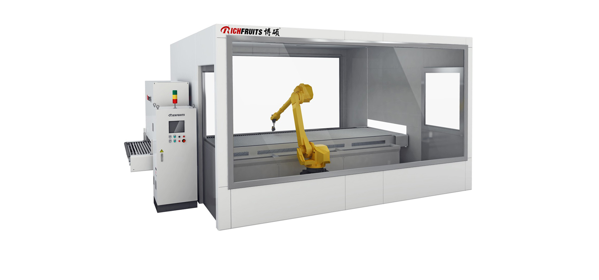 機(jī)器人噴膠機(jī)在3D視覺系統(tǒng)的加持下,板式工件混合隨意擺放,智能識別平板、凹槽、凸條工件,并自動生成對應(yīng)的噴涂軌跡,無需人工離線建模,簡單易操作;配合免維護(hù)的輸送鏈板系統(tǒng),能夠?qū)γ馄犷惖漠a(chǎn)品進(jìn)行均勻噴膠作業(yè)。
