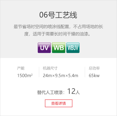 工藝要求 環(huán)保PU底漆、PU面漆 產(chǎn)品種類 實木復(fù)合門 產(chǎn)線數(shù)量 4條 設(shè)備特色 帶回收的環(huán)保PU漆及立體干燥房,門扇雙面噴漆+立體干燥。 生產(chǎn)產(chǎn)能 600套/天 廢氣處理 干式過濾+催化燃燒處理系統(tǒng) -