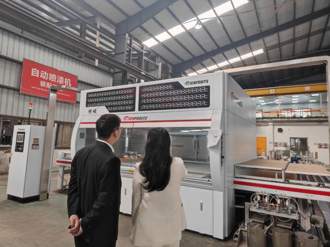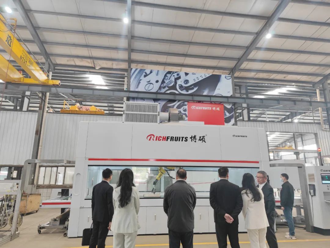 再一同體驗了“涂裝智能生產(chǎn)線”準(zhǔn)分子膚感板的生產(chǎn)過程,從進(jìn)料到出成品,感受到準(zhǔn)分子膚感板如嬰兒般皮膚細(xì)膩的觸感。通過現(xiàn)場感受涂裝設(shè)備在效率、智能、環(huán)保、節(jié)能方面的先進(jìn)性,劉書記對博碩在技術(shù)研發(fā)的投入及設(shè)備的智能、環(huán)保、節(jié)能方面的顯著成效給予了充分的肯定和高度的贊揚(yáng),對博碩未來及長遠(yuǎn)發(fā)展非??春茫瑫r也做出了相關(guān)的工作指示。