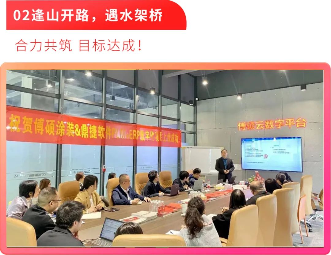 目前好消息已經傳來,歷經7個月的調研梳理及上線部署,合作雙方的辛苦付出獲得了階段性成果,博碩涂裝信息化項目迎來里程碑式意義的時刻!近期上線大會在雙方的高度重視下成功舉辦。廣東博碩涂裝技術有限公司董事長謝君、信息部經理馮聲醒,鼎捷軟件項目經理畢子龍等雙方團隊出席會議。會議的召開標志著經過全體項目組成員的一致努力下,正式將“啟動”變?yōu)椤?/span>上線”。