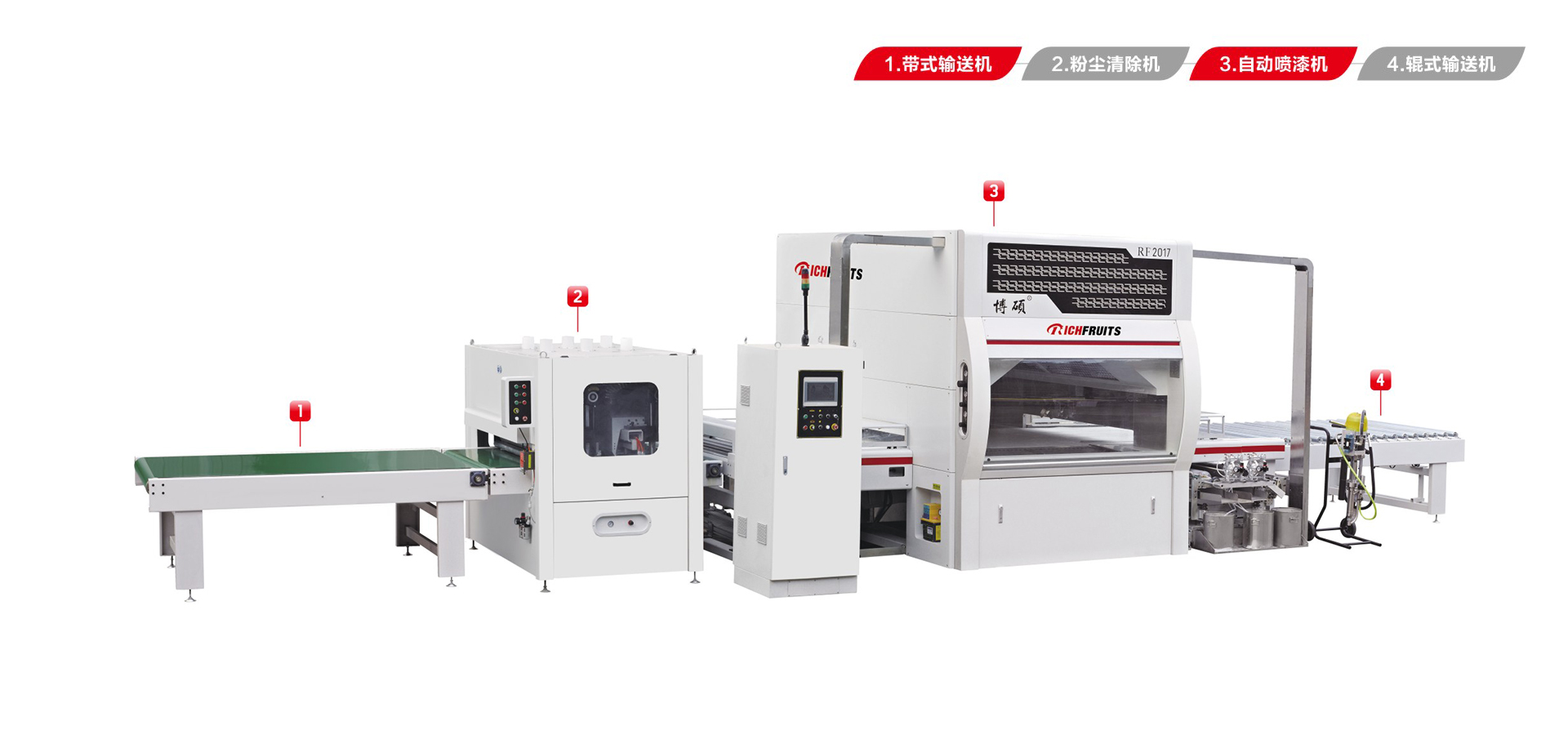 適用于板式家具、實(shí)木門(mén)、櫥柜門(mén)、工藝品、裝飾板、硅酸鈣板、玻鎂板、水泥纖維板的板式加工件的平面和四個(gè)側(cè)邊進(jìn)行高質(zhì)量、大批量連續(xù)噴漆。