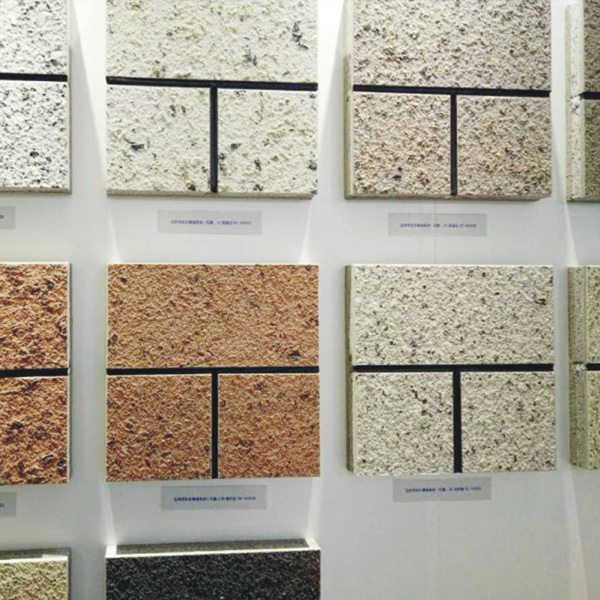 以中高密度纖維水性板/硅酸板為基材,透過砂光和多層水性漆輥涂,達(dá)到仿花崗巖的飾面效果,最后輥涂氟碳罩面,具有良好的自潔性能。水包水多彩漆可噴涂浮雕質(zhì)感的效果,自然清新,新鮮感持久不變,是一體板行業(yè)受歡迎的產(chǎn)品之一。